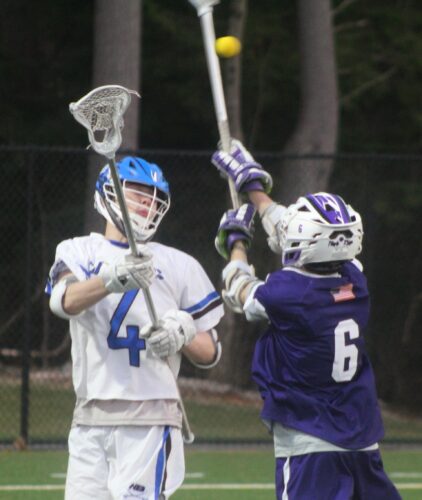 Tuesday night’s boys lacrosse battle between the Hollis Brookline and Nashua High School South teams had all the makings through the first 24 minutes of a nip-and-tuck game, two evenly matched teams going at it tooth and nail.