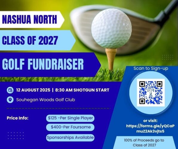 North’s junior Class President, Evan Linscott, a three-sport athlete (soccer, basketball, tennis) is putting together a golf tournament in August to help raise money for Titan Class of 2027. The Nashua North Class of 2027 Fundraiser Tournament will be held on August 12 with an 8:30 a.m.shotgun start .