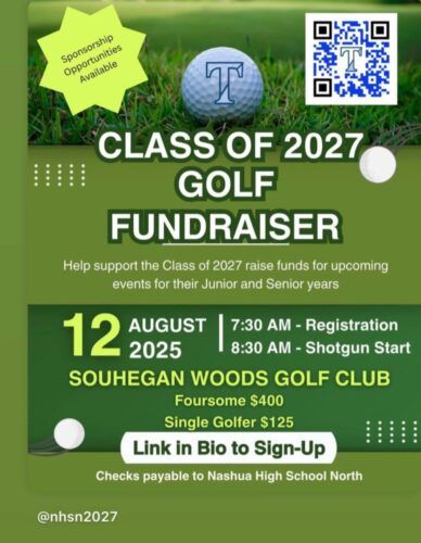 The Nashua High School North Class of 2027 is holding a golf tourney fundraiser on Tuesday, Aug. 12 at Souhegan Woods Golf Club. It will help raise funds for upcoming events and activities for the students’ junior and senior years.