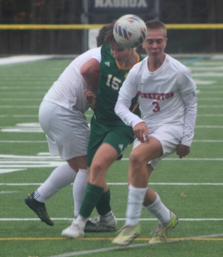 Pinkerton (4-10-3) had three golden chances in the first half thanks to Shea. One ball hit the post, another slow roller was booted away by defender Griffin Cassell after goaltender Beau Boughter got a small piece of it, and Boughter made a big save on a corner, reaching high. But none was better than his sliding stop on Shea in the second half on a breakaway attempt.
