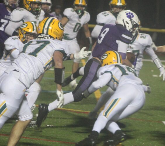 But from then on, for the most part, it was South’s night. The Panthers (10-2 overall) marched 59 yards in 10 plays with Sam Levine’s 13-yard scoring run helping to make it 14-7. Josh Tripp then stopped a BG drive with an interception of a Nate Bowen pass, and ran it 68 yards down to the Cardinal 12. Jackson found Levesque on a 13-yard TD and it was 21-7. When the Panthers added a 27-yard Bois field goal on the final play of the first half, it was 24-7 – almost the exact reverse of the regular season matchup.