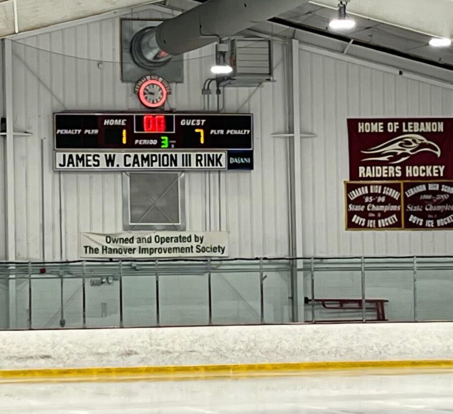 The scoreboard at historic Campion Rink in Hanover tells a good story for the Alvirne-Milford boys hockey team on Monday night. (Courtesy photo)