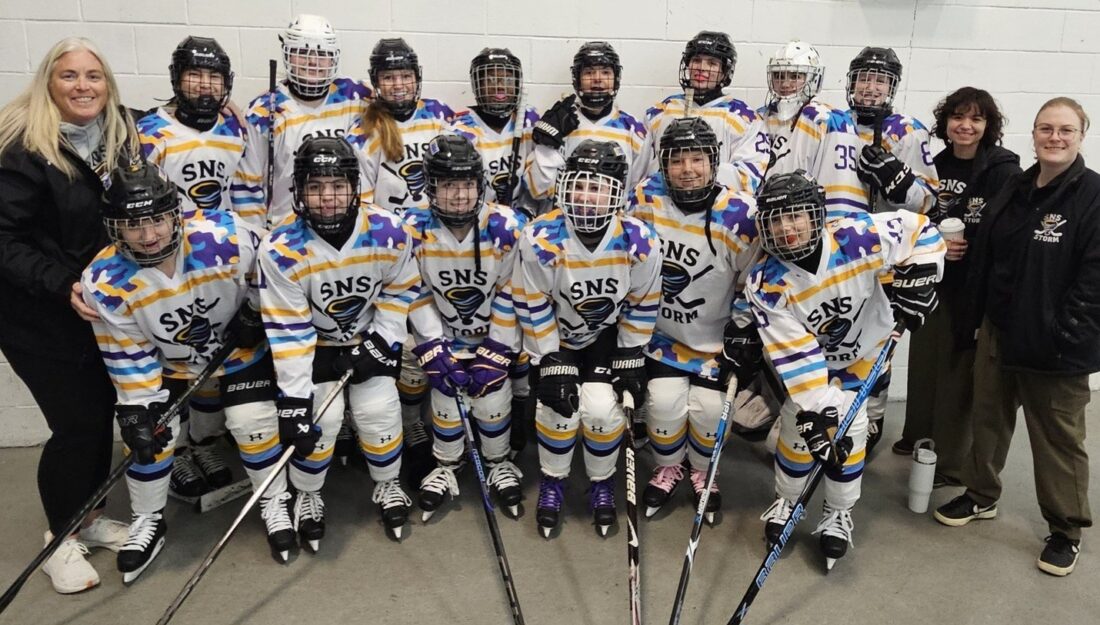 The Souhegan-Nashua Storm show off their uniforms for Military Appreciation Day Saturday at Conway Arena. (Courtesy photo)