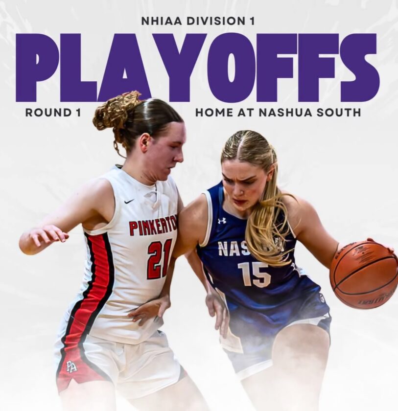 They're geared up for the first home playoff game in ages at Nashua South, as this social media graphic of Panther Maggie Gallagher (15) moving on Pinkerton's Brooke Benz shows. (Courtesy photo)