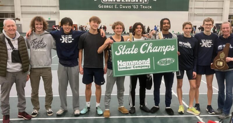 They were neck-in-neck with a few events to go, but the Milford High School boys indoor track team pulled away from a 35-all tie with ConVal to win the Division II state title on Saturday night at Plymouth State's George E. Davis Track.