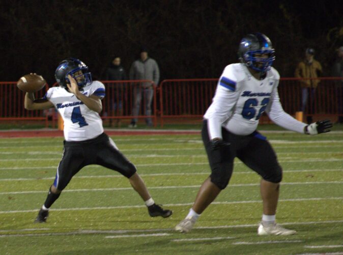 DERRY – After sneaking into the Division I playoffs with last week’s 34-21 win over Bishop Guertin, the Merrimack High School for all team’s reward was to hit the road and face a high-powered Pinkerton Academy offense engineered by quarterback Aiden McDonald.