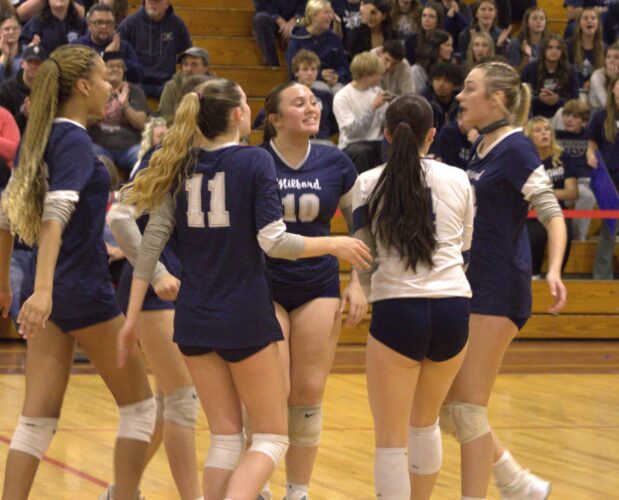 DERRY – Milford High School senior captain Abigail Krulis and her volleyball coach Haley Patched arrived together for a memorable ride that ended with a loss to Coe-Brown in the 2021 Division II championship match.