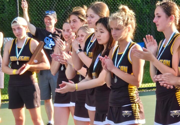 DOVER – She hit an overhand smash to give the Souhegan High School girls tennis No. 2 doubles team an 8-6 win in the Division II finals on Wednesday, a great way for Mishka Tower to end her Saber athletic career.