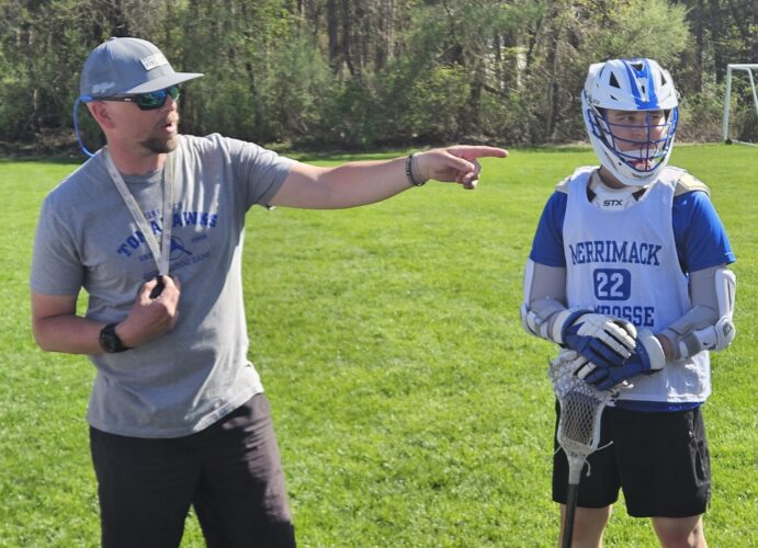 There was eight minutes and eight seconds left in a game just a week ago at Nashua's Stellos Stadium between the Merrimack and Nashua High School South boys lacrosse teams when Jake Miller ran out onto the field. The Merrimack fans in attendance gave ...