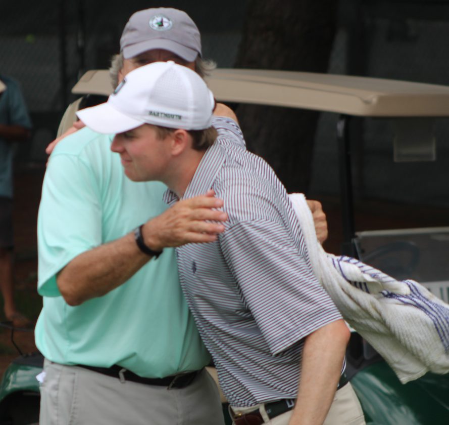 James Pleat gets congratulated by hs father, Phil, after winning the NHGA State Am title last July in Nashua. (Telegraph photo by TOM KING)