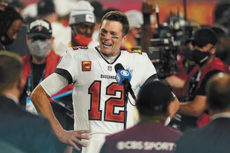 TAMPA, Fla. (AP) – Without Bill Belichick, Tom Brady won his seventh Super Bowl and is on pace to throw a career-high 53 touchdown passes at age 44.
