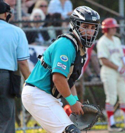 Catching, as he has throughtout his career, incuding in the Cape Cod League as shown here, is what former Merrimack standout Mickey Gasper feels is his ticket to the big leagues. (Courtesy photo)