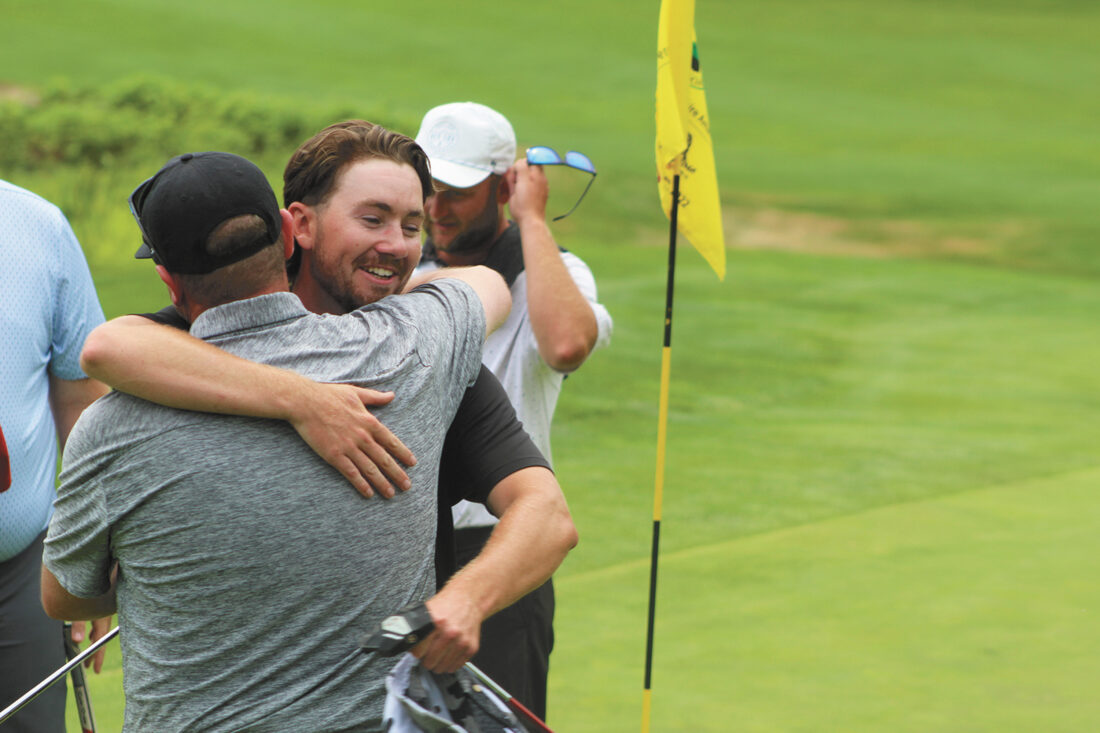 It was all hugs for Nashua's Brandon Gillis after he won the NH State Am title last weekend. (Telegraph photo by TOM KING)