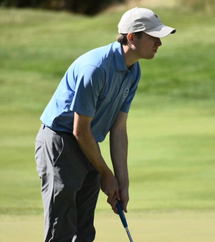 Nashua's James Pleat eyes a putt during his successful final round of the NHGA Mid-Am in Thornton. (Photo courtesy of NHGA)