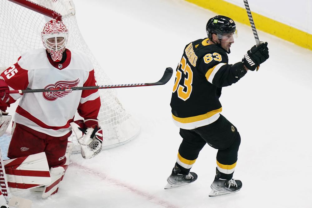 BOSTON (AP) — Brad Marchand had two goals and an assist in his season debut and the Boston Bruins extended their winning streak to four games, beating the Detroit Red Wings 5-1 on Thursday night.