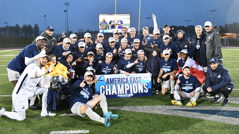 DURHAM – Junior forward Eli Goldman and graduate student Tola Showunmi each scored a goal as the No. 22 nationally ranked and No. 1 seed University of New Hampshire men’s soccer team defeated No. 3 seed UAlbany, 2-0, on Sunday afternoon at Wildcat Stadium in the championship game of the America East Tournament.