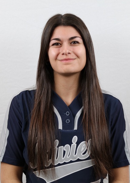 Nicole Verrette tossed a four-hit shutout as the Rivier softball team salvaged a split with Albertus Magnus on Friday. (Photo courtesy of Rivier University)