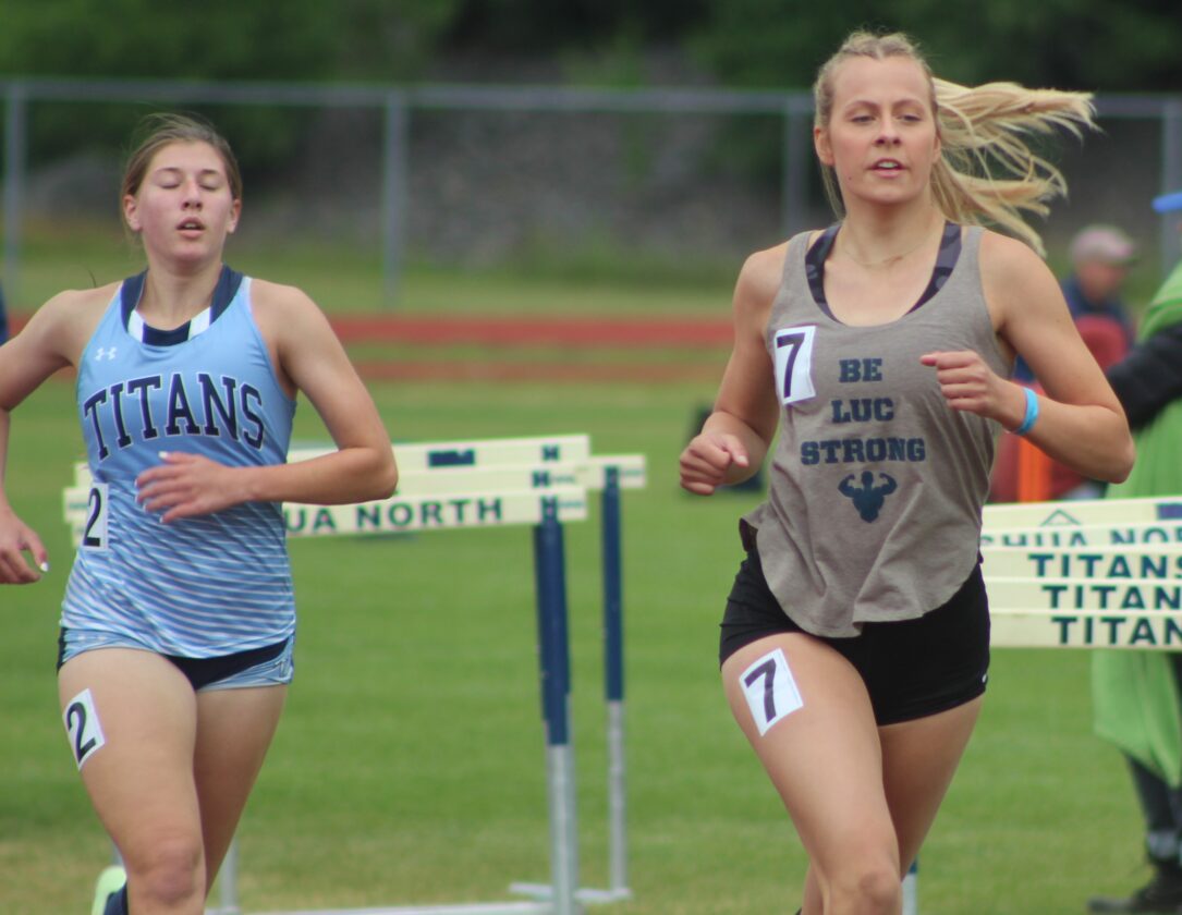 Nashua North's Isabella Di Vernieri, left, finished third in last year's Heptathlon behind winner Plymouth Regional's Katherine Luehrs, right, but the North graduated senior should be one of the favorites in this weekend's even. (Telegraph file phot by TOM KING)