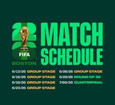 BOSTON – FIFA Sunday announced the much-anticipated Match Schedule for the 2026 FIFA World Cup, in which Boston will host seven matches including a Quarterfinal at Gillette Stadium in Foxborough, Mass.