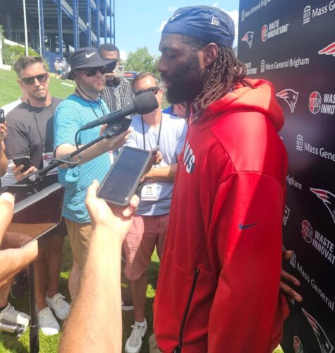 The was a buzz on Media Hill while the Patriots practiced, because there was word that Judon might talk Monday or Tuesday. Those of us who show up at camp here and there – c’mon, there’s only so many 7 on 7 drills we can take – were salivating. Ready-made column. Even the regulars were in prayer that it would be true with pretty much a quiet day otherwise while the Patriots practiced in brutal hot sun as nary a cloud showed up until the two-plus hour session was just about over.