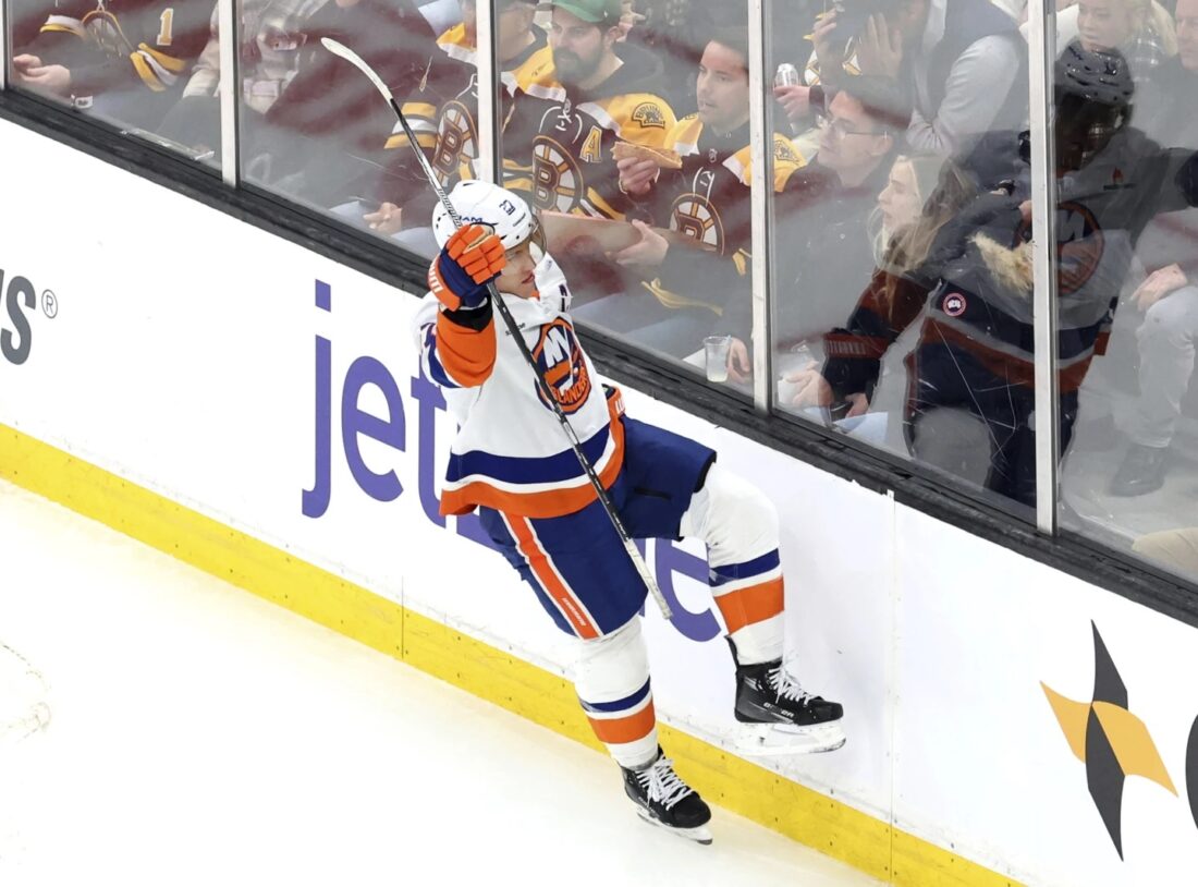 Trailing 1-0 and short-handed after an unsuccessful challenge on the Bruins’ goal by Koepke 3:01 into the game, the Islanders tied it on Horvat’s goal 21 seconds later.