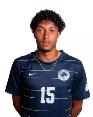 Rivier's Luiggi Ferreira got the clnching penalty kick to land the Raiders in the GNAC semfinals. (:Photo courtesy of Rivier Univiersity)