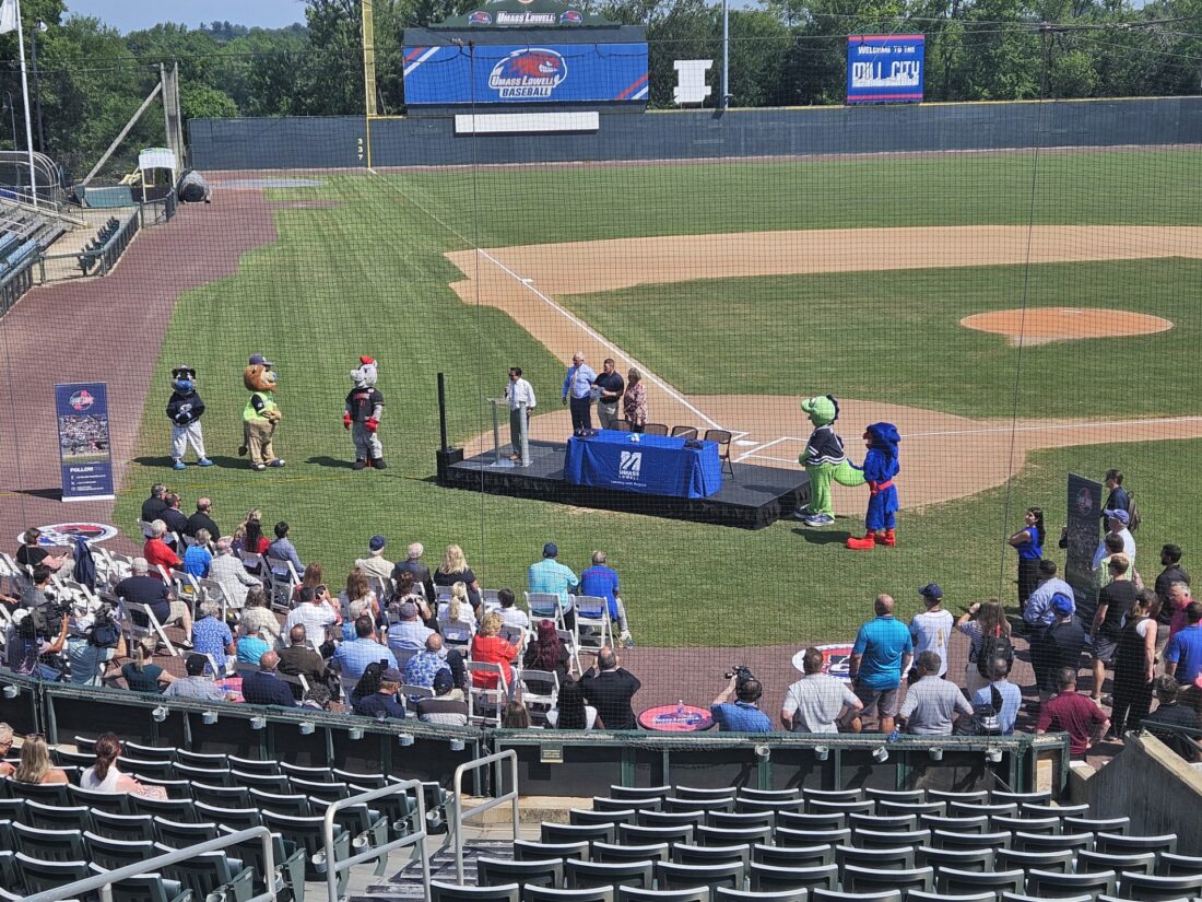 This was the scene for the announcement of a Futures League franchise for Lowell's LeLacheur Park in late July. The team name and owners will be revealed on Tuesday. (Telegraph file photo by TOM KING)