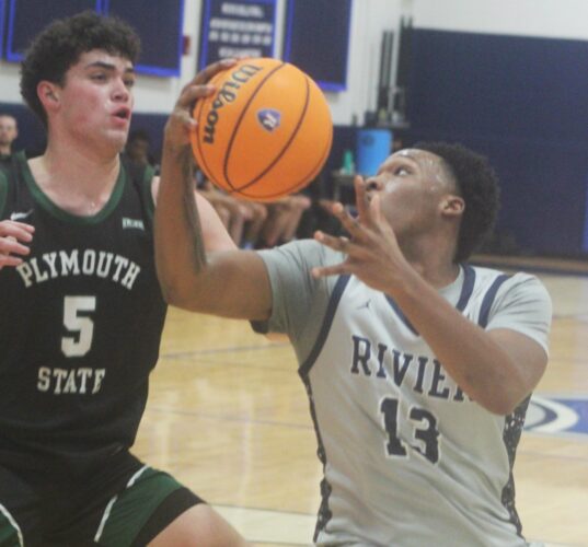 Baguidy’s first half when he went 3 of 5 from 3-point range gave the Raiders a 43-33 lead at the break. But the Panthers, who were led by Bosworth’s 21 points, took advantage of the Raiders near literal meltdown to grab a 48-47 lead six minutes in. The game was tied at 53 with 8:27 left, but Rivier took control with a 7-0 run capped by a Theo Brisco IV 3-pointer. He had 13 points while Izaiah Shaw-Glen (12 points, nine rebounds) had three key hoops down the stretch to make it a 66-59 game with about 2:30 to play.