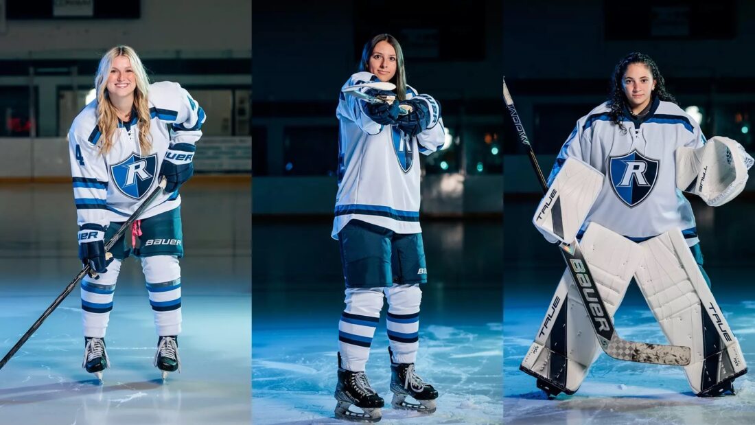 Rivier women's hockey players, from left, Jessica Driscoll, Chloe Bryda and Taylor Bruno garnered MASCAC awards for their play last week. (Photo courtesy of Rivier Athletics)