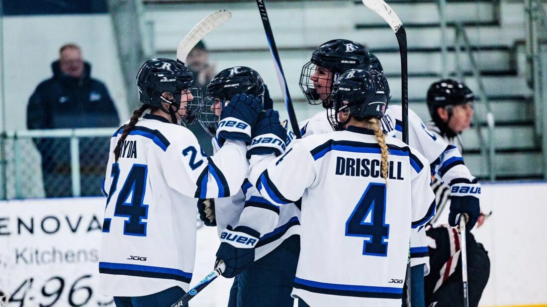 The Rivier women's hockey team had plenty to celebrate on Friday. (Courtesy photo by Nick Grace/Rivier Athletics)