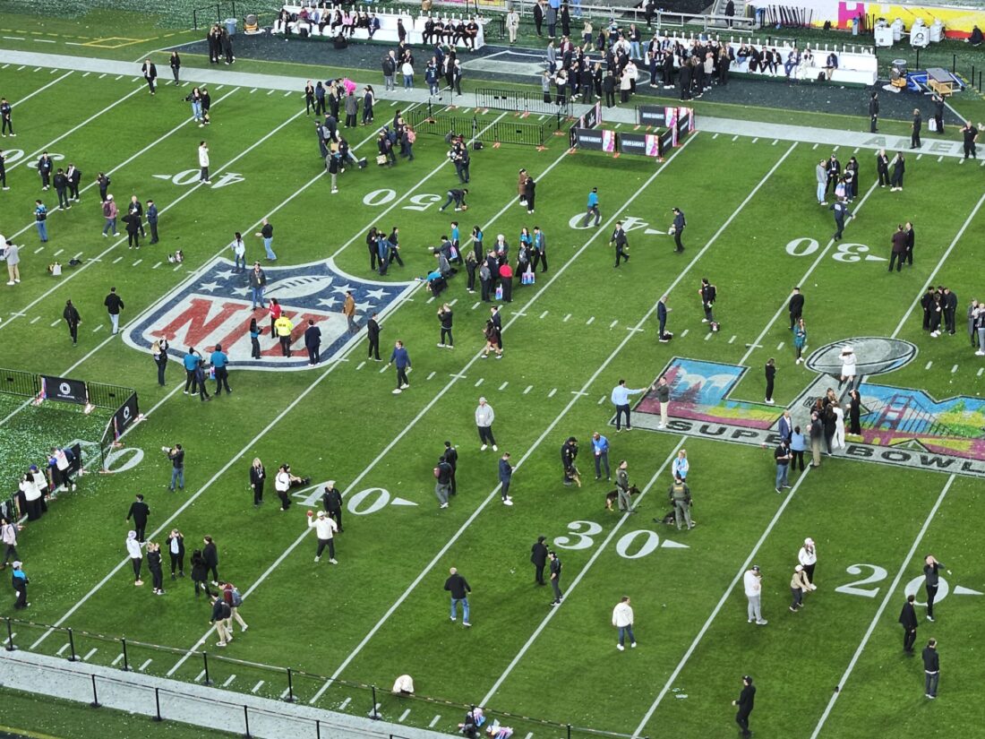 Fans were still on the field at Levi Stadium three hours after Super Bowl LX late Sunday in Santa Clara, Calif. (Telegraph photo by TOM KING)
