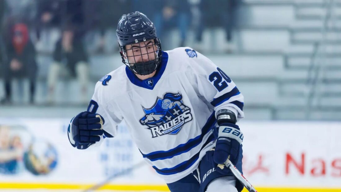 Mason Rudrud had one of Rivier's two goals on Thursday night vs. Framingham State on the road Thursday night. (Courtesy photo by Kyle Prudhomme/Rivier Athletics)
