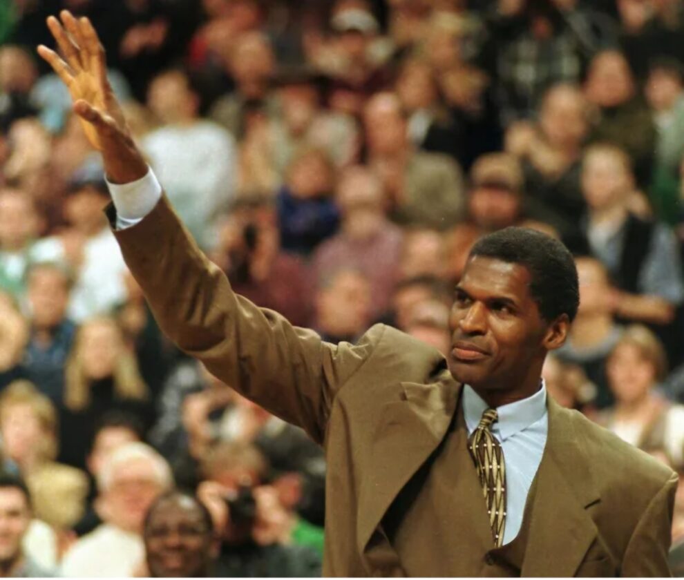 Former Celtics great Robert Parish, shown during his number retirmement ceremony at TD Garden in January of 1998, will be holding a book signing in Nashua on March 19. (AP photo)