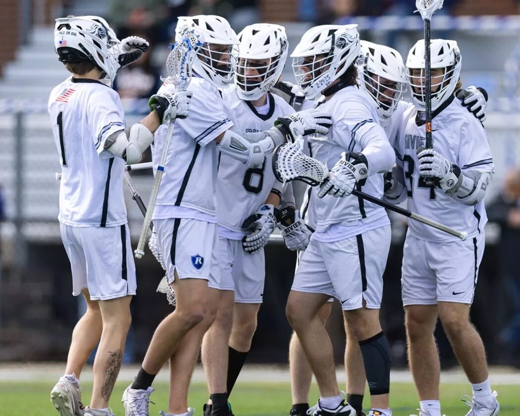 The River men's lacrosse team will now go into the postseason as the GNAC's No. 1 seed. (Courtesy photo by Katie Morrison-O'Day/Rivier Athletics)