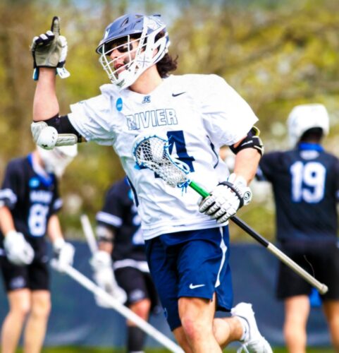 Behind a nine-point performance from graduate student Michael Ference, the Rivier men's lacrosse team earned its first-ever NCAA postseason victory with a 20-10 win over Maine Maritime on Wednesday at Joanne Merrill Field.