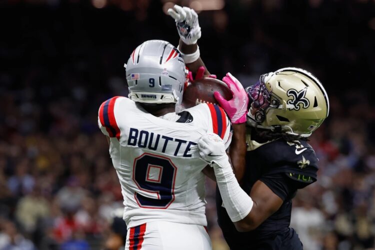 Boutte caught two of Drake Maye’s three touchdown passes and added a game-sealing catch to help the Patriots outlast the Saints ...