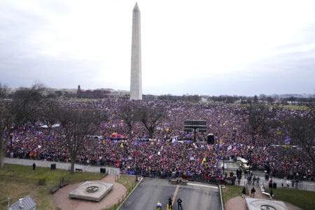 FILE - With the Washington Monument in the background, people attend a rally in support of President Donald Trump near the White House on Wednesday, Jan. 6, 2021, in Washington. The Jan. 6 congressional hearings have paused, at least for now, and Washington is taking stock of what was learned about the actions of Donald Trump and associates surrounding the Capitol attack.(AP Photo/Jacquelyn Martin, File)