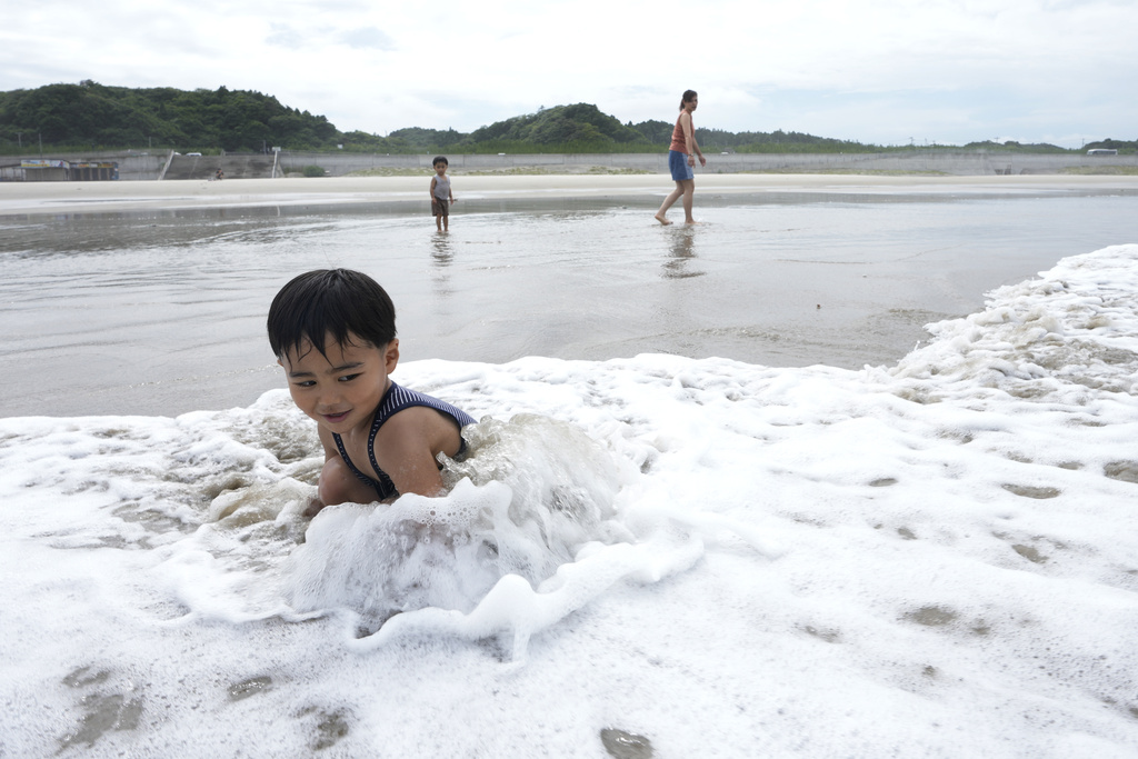 Family members enjoy at the Usuiso beach in Iwaki, northeastern Japan, Thursday, July 6, 2023. (AP Photo/Hiro Komae)